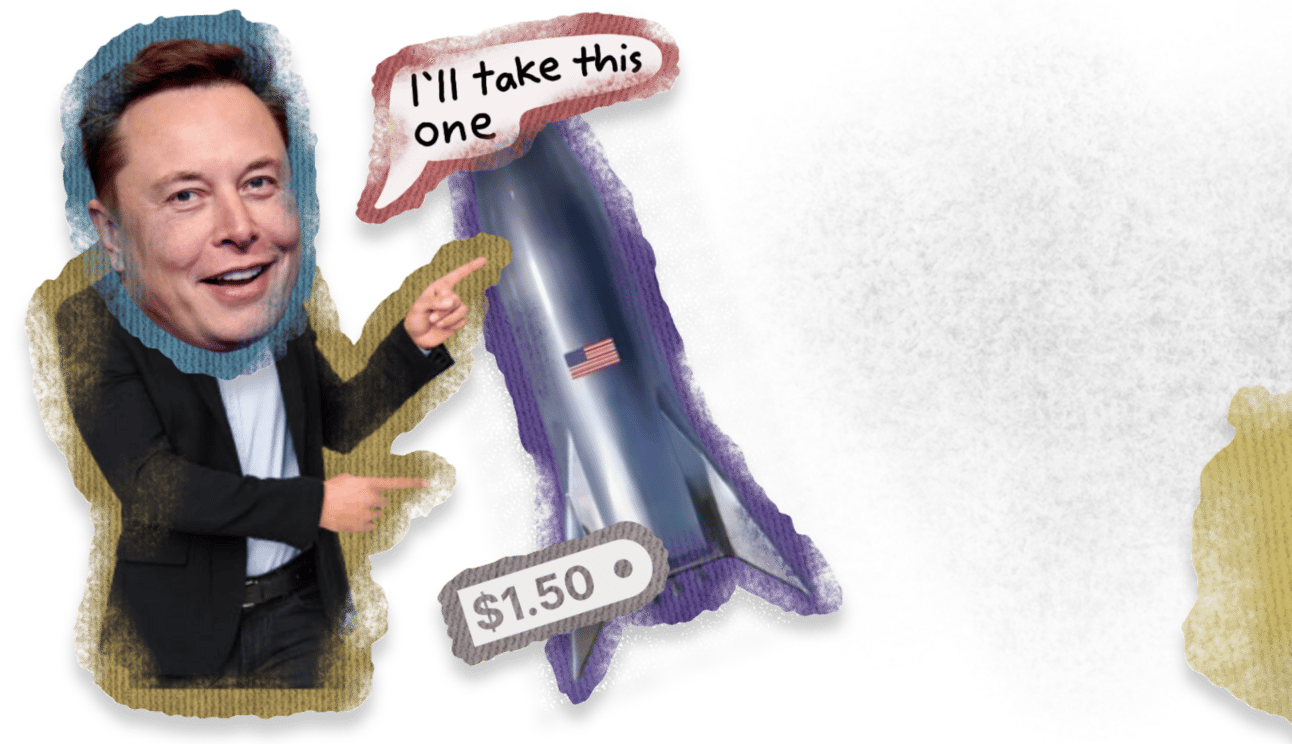 By researching this, he found that the raw materials for building a rocket composed only about 2% of the typical price. That means the rest of the cost came from inefficiencies in the manufacturing, assembling, and other processes.